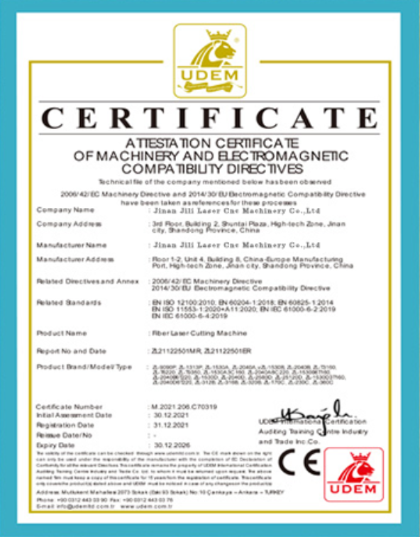 Jinan Jili Laser Cnc Machinery Co.,Ltd is one of the biggest laser equipment manufacturers in China. We manufacture Fiber Laser Cutting Machine, Fiber Laser Welding Machine, Fiber Laser Cleaning Machine,Co2 Laser Machine,Laser Marking Machine. We have exported our equipment to many countries, including Korea, USA, Italy,France,Germany,etc.