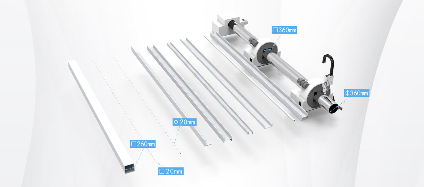 Not only cut conventional tubes like round, square and rectangular tubes, and profiles like channel, angle and H-shaped steels, also cut special-shaped tubes easily like triangular, concave, Land C-shaped tubes, etc.