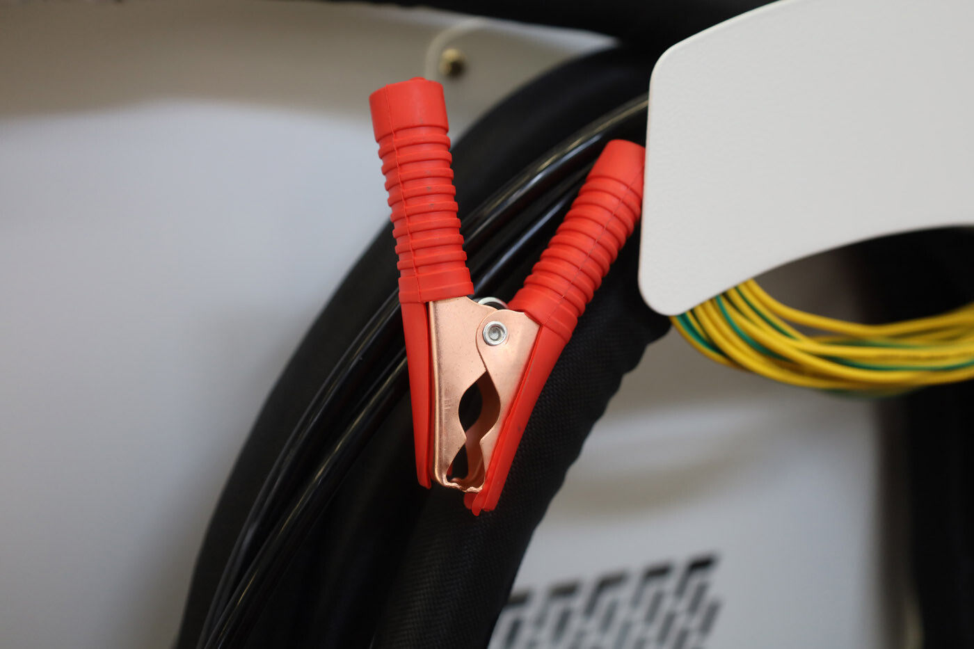 There have the red safety clip on the side of the laser head. The operator must fix the clip on the metal materials, then the machine could normal working. This is the protection for the operator, which give the more safe working environment.