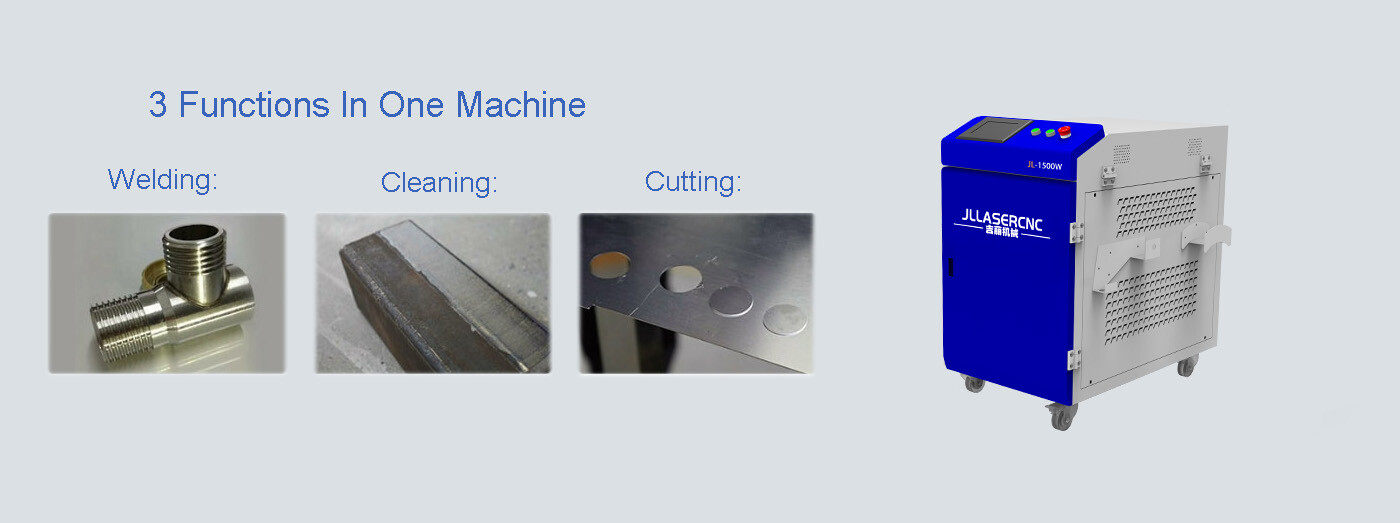 This machine integrates three functions of laser welding, laser cleaning and laser cutting.